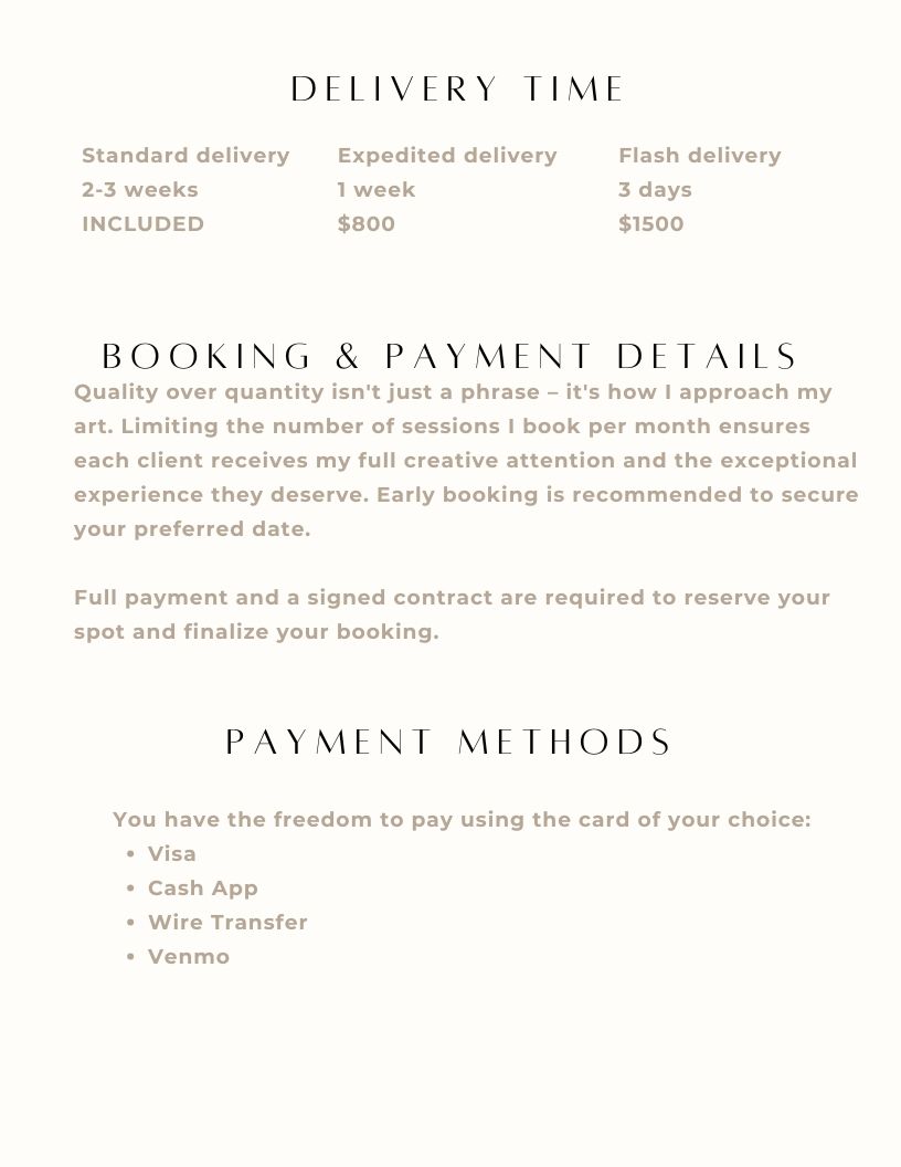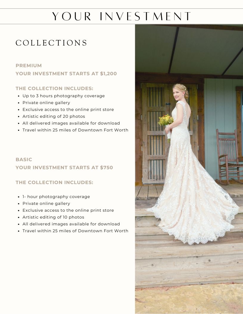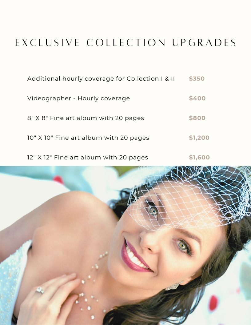 Please note: there is an additional location fee for each place we shoot (for example, park permits, travel, parking, or venue fees).