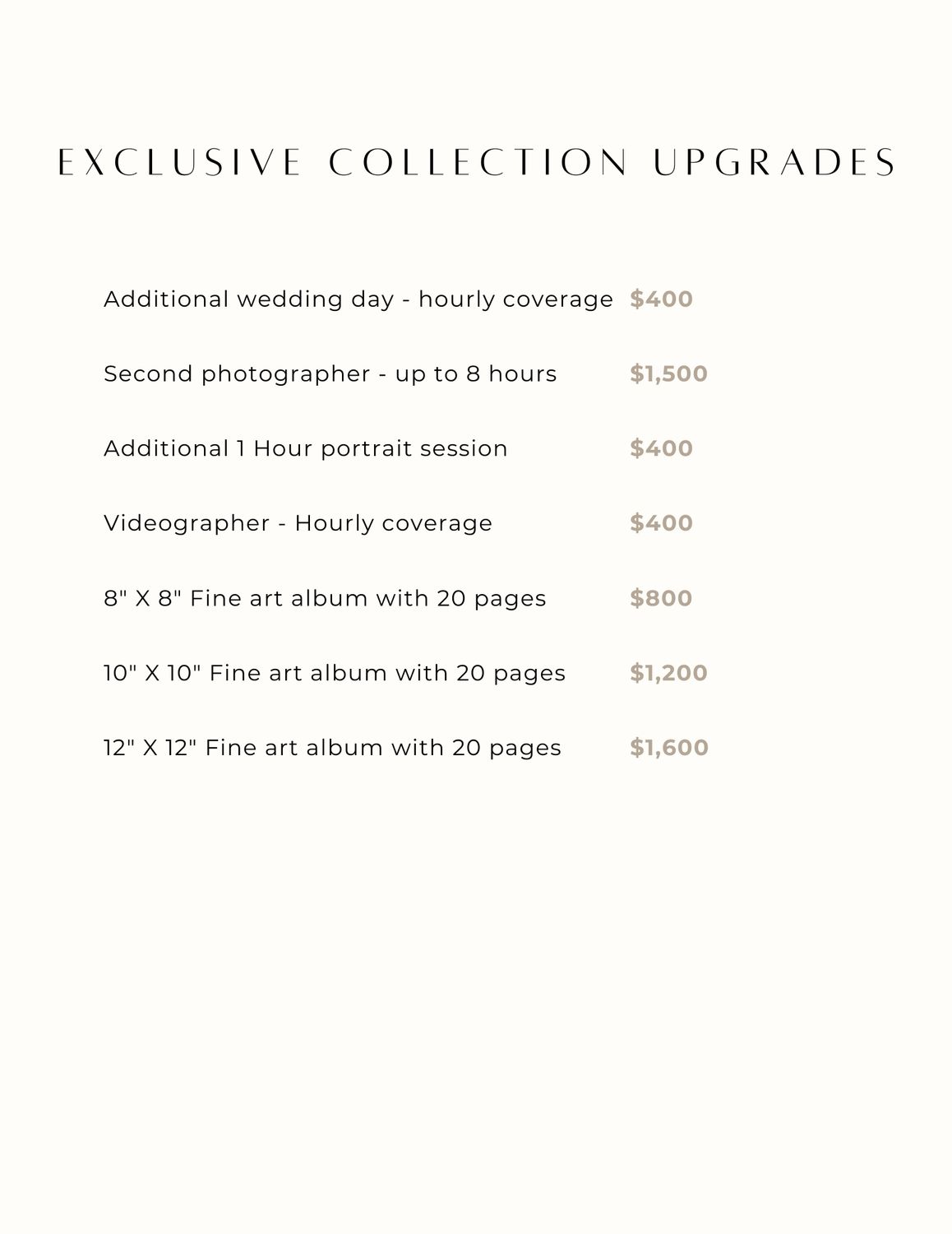 • 12×12″ signature fine art album with 20 pages ($1600 value)